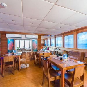 Ana teknemize eşlik eden ve “Donhi” adı verilen yardımcı dalış teknesi, tur boyunca bizimle olacaktır. Tüm dalışlar bu tekneden gerçekleştirilecektir. Bu sayede ana teknede kompresör gürültüsünden uzak, konforlu bir hafta geçireceğiz. Dalışlarımızın daha güvenli ve rahat olması için Nitrox kullanımı tur ücretine dahildir (Nitrox sertifikası zorunludur).